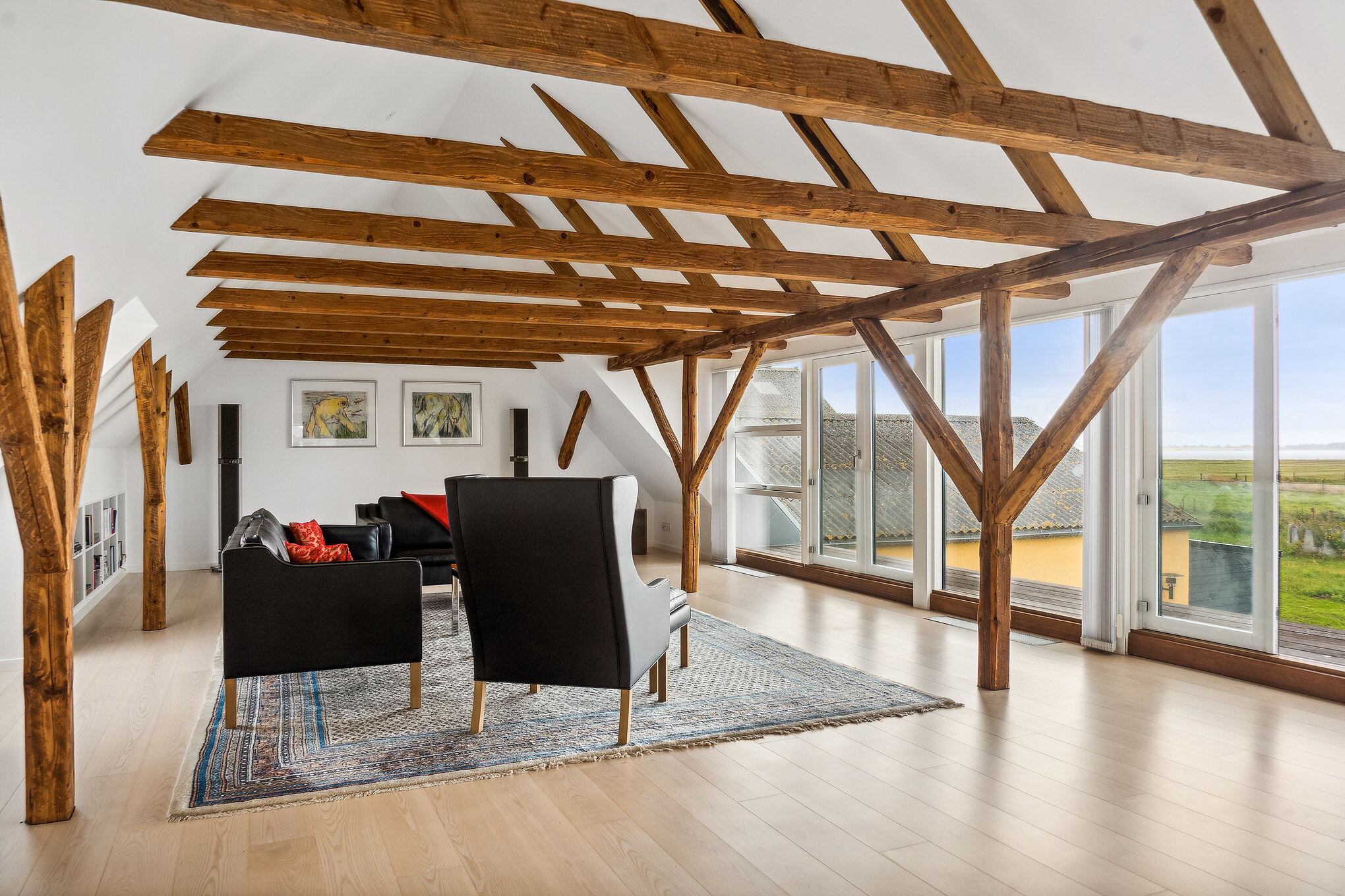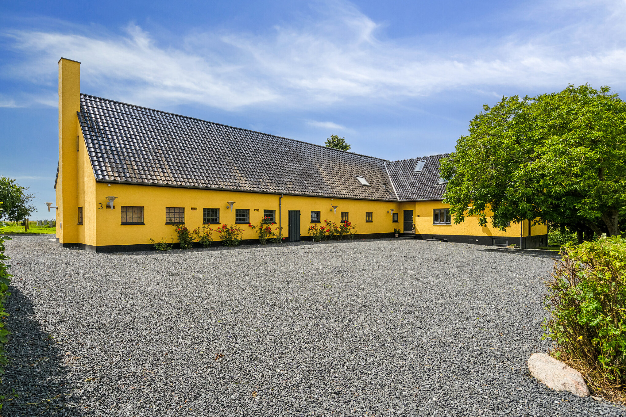 Stuehuset er på 331 kvm fordelt på 2 plan og herudover findes 72 kvm flot indrettet kælder. Hele stuehuset er renoveret fra A – Z i år 2011 og alt fremtræder lækkert og indflytningsklart. På 1. salen er bl.a. indrettet en stor panorama-stue med flot sydvendt udsigt over Lillebælt med Brandsø og Jylland i baggrunden. Herudover stort kontor med udgang til gavlaltan. Herfra er der ligeledes panoramaudsigt og man kan se Lillebælt både mod nord, syd og vest. Den sidste del af 1. salen er indrettet med master bedroom og tilhørende badeværelse med både bruseniche og badekar. Hele 1. salen er renoveret således, at alle gamle bjælker er synliggjorte og i dag fremtræder som en del af den flotte indretning.
