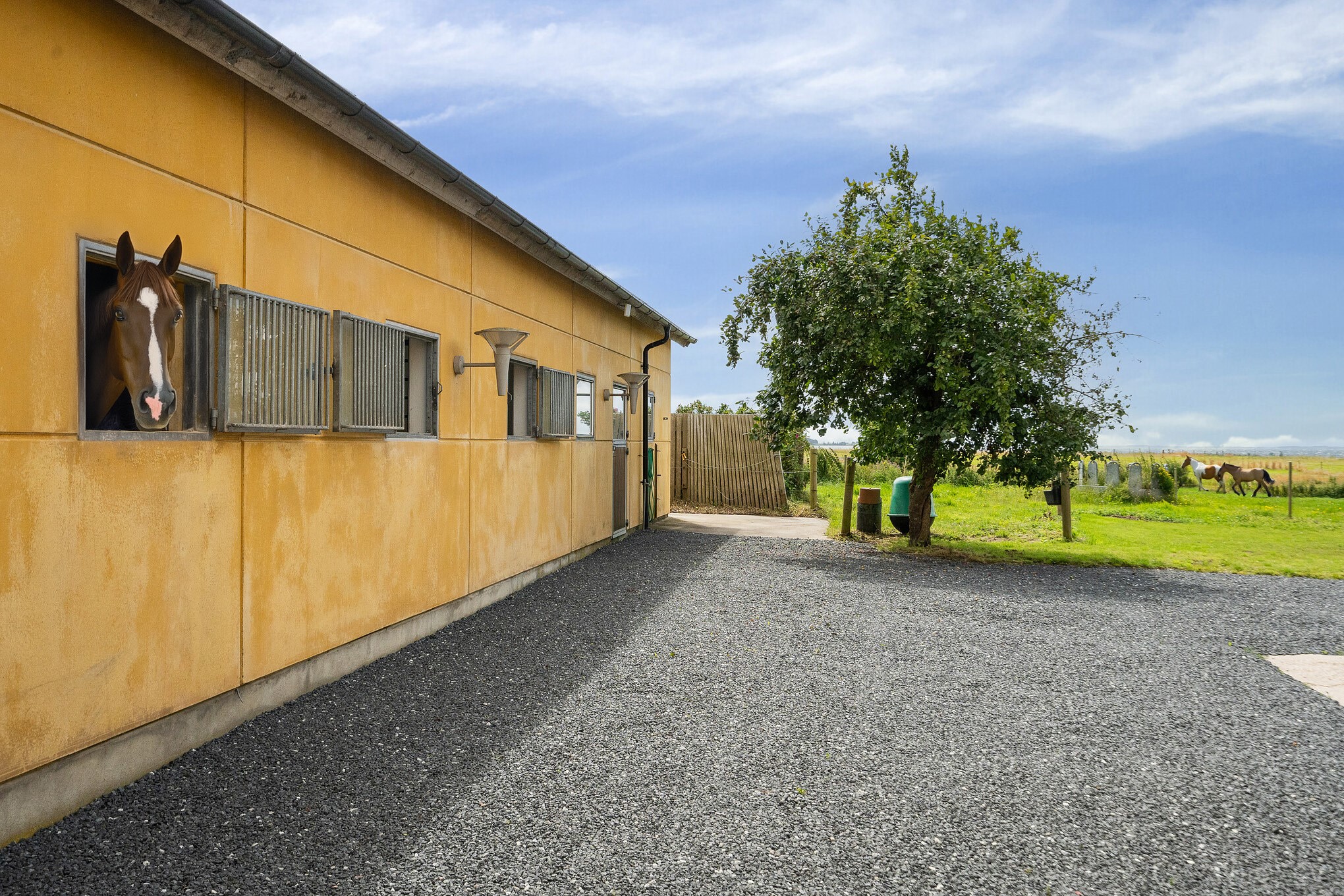 Nuværende ejer har anvendt ejendommen i forbindelse med opdræt af islandske heste, og der er i år 2005 opført hestestald på 312 kvm med enkeltbokse, løsdriftsstald, sadelrum, vaskeplads, maskinhal og garage. Pt. er der 3 separate bokse + løsdrift, men indretningen kan let ændres såfremt der er behov for flere bokse. Udenfor findes marker med folde, løsdriftsbygninger / læskure (i alt 4 stk), ridebane, rundel m.v. Herudover findes sidelænge til stuehuset med garage, tidligere stald, carport m.v. på 208 kvm samt uudnyttet loft på sidelængen.