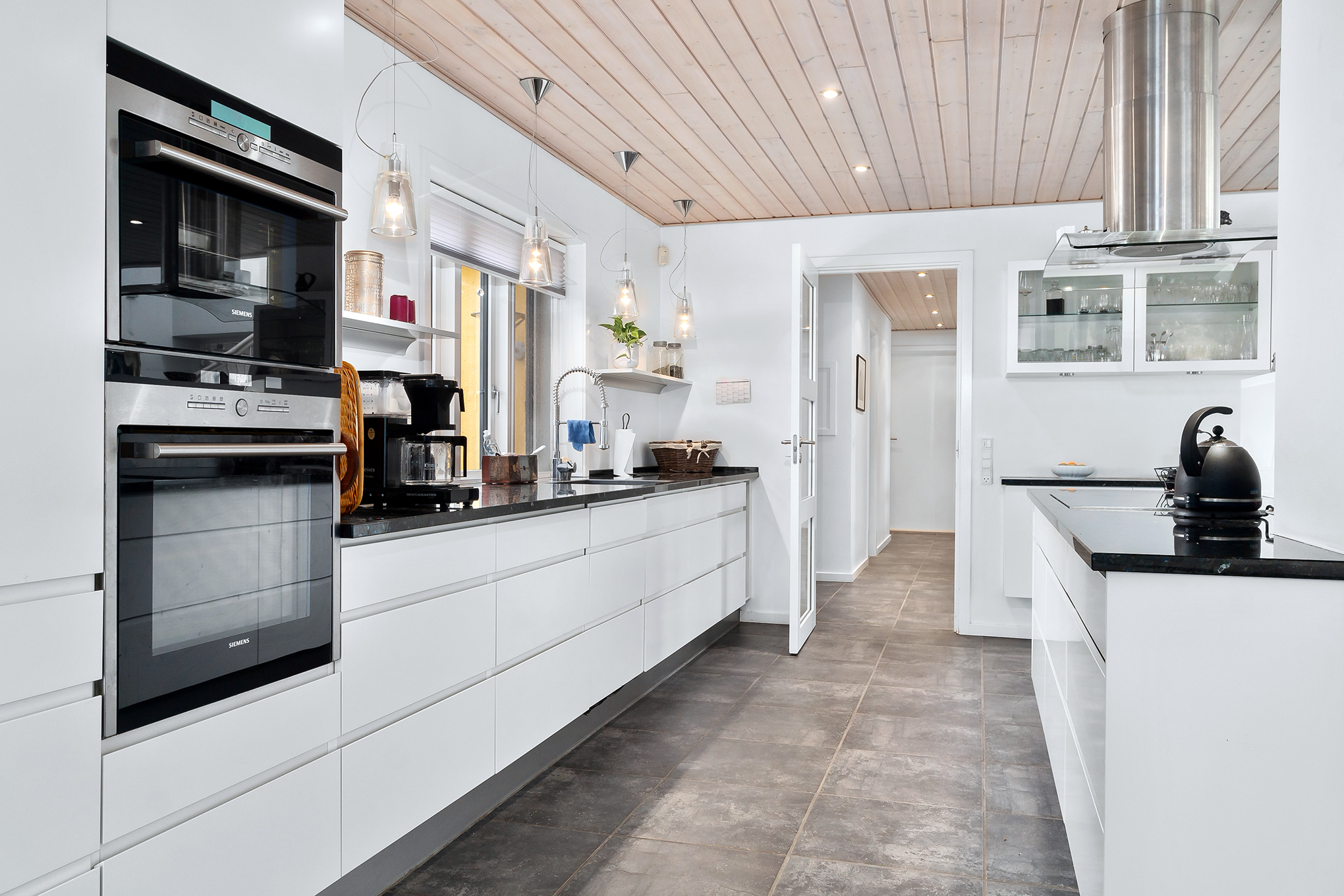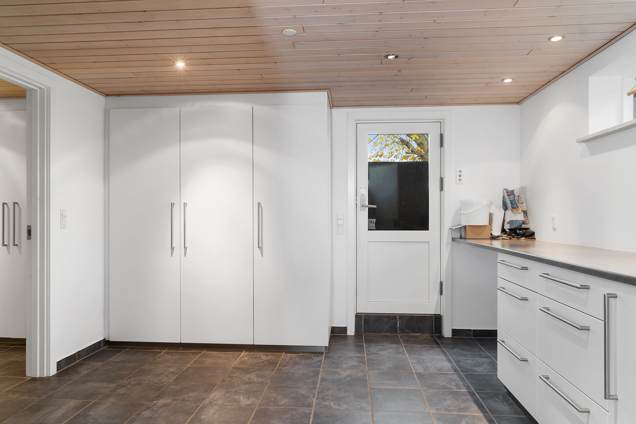Fra entré er der en flot trappe med indbyggede vægspots over trinene ned til kælderetagens 72 kvm. Her findes viktualierum, vaskerum, opbevaringsrum – alle med en overdådighed af indbygningsskabe, masser af bord- og arbejdsplads og overalt de samme flotte klinker på gulvene. Fra det ene vaskerum er der ligeledes udgang til haven. En virkelig lækker kælder, hvor der er plads til god orden, reel lofthøjde og en lækker atmosfære. I et af rummene finder man husets varmesystem – jordvarmeanlægget som blev installeret i år 2011. Samtidig med den gennemgribende renovering der blev udført, blev der lavet gulvvarme overalt i stuehuset – både i kælder, stueetage og på 1. sal. Undtaget er dog viktualierum i kælder samt soveværelse og gæstetoilet i stueetagen.