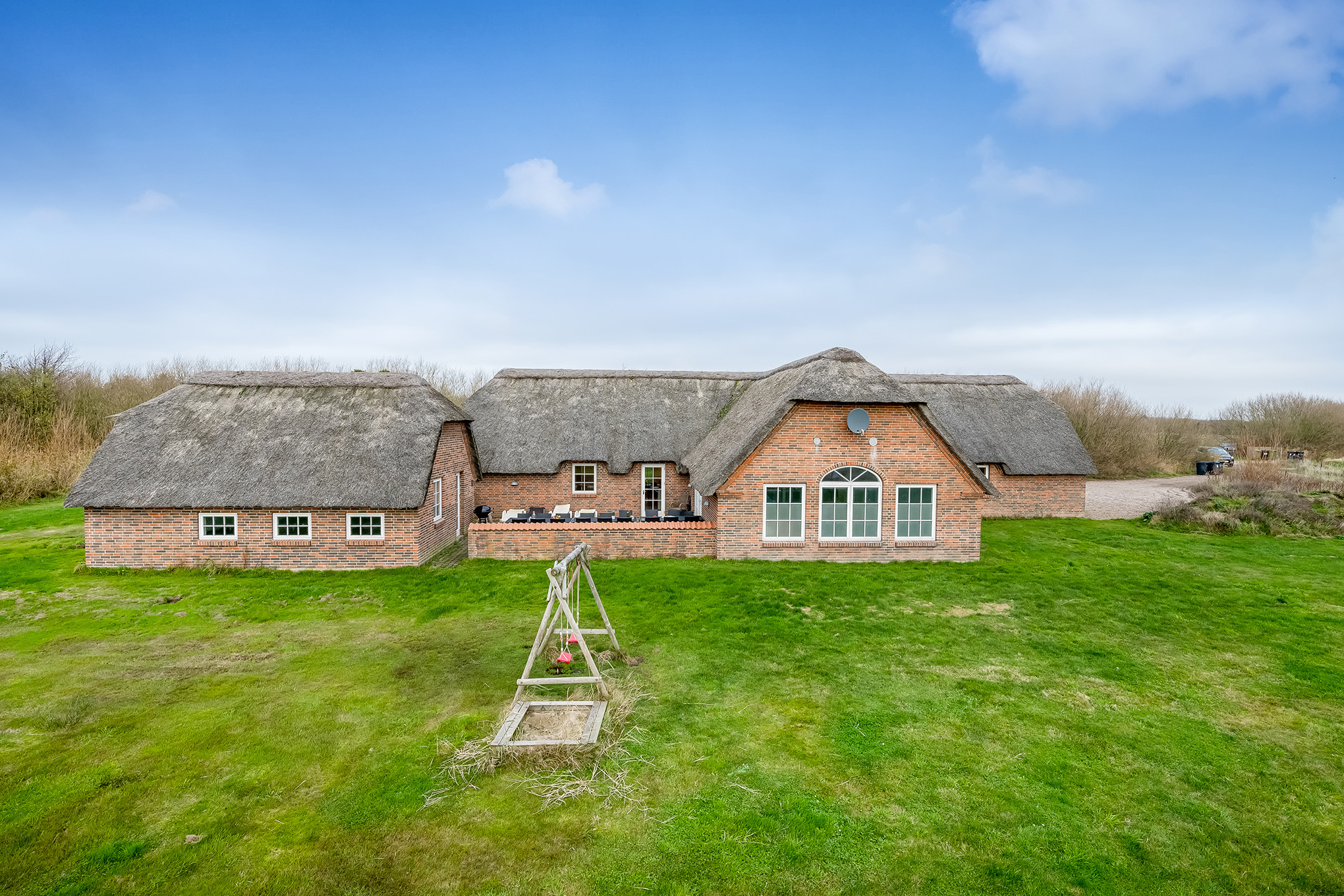Huset er opført i år 2011 som et fuldmuret kvalitetshus med stråtag.