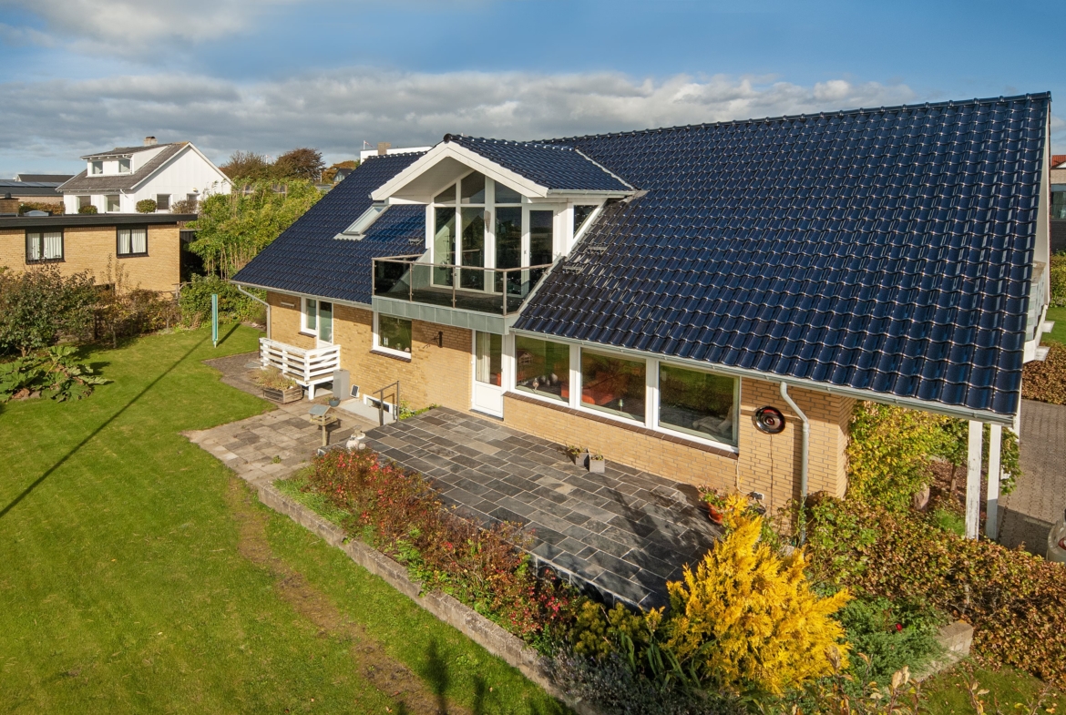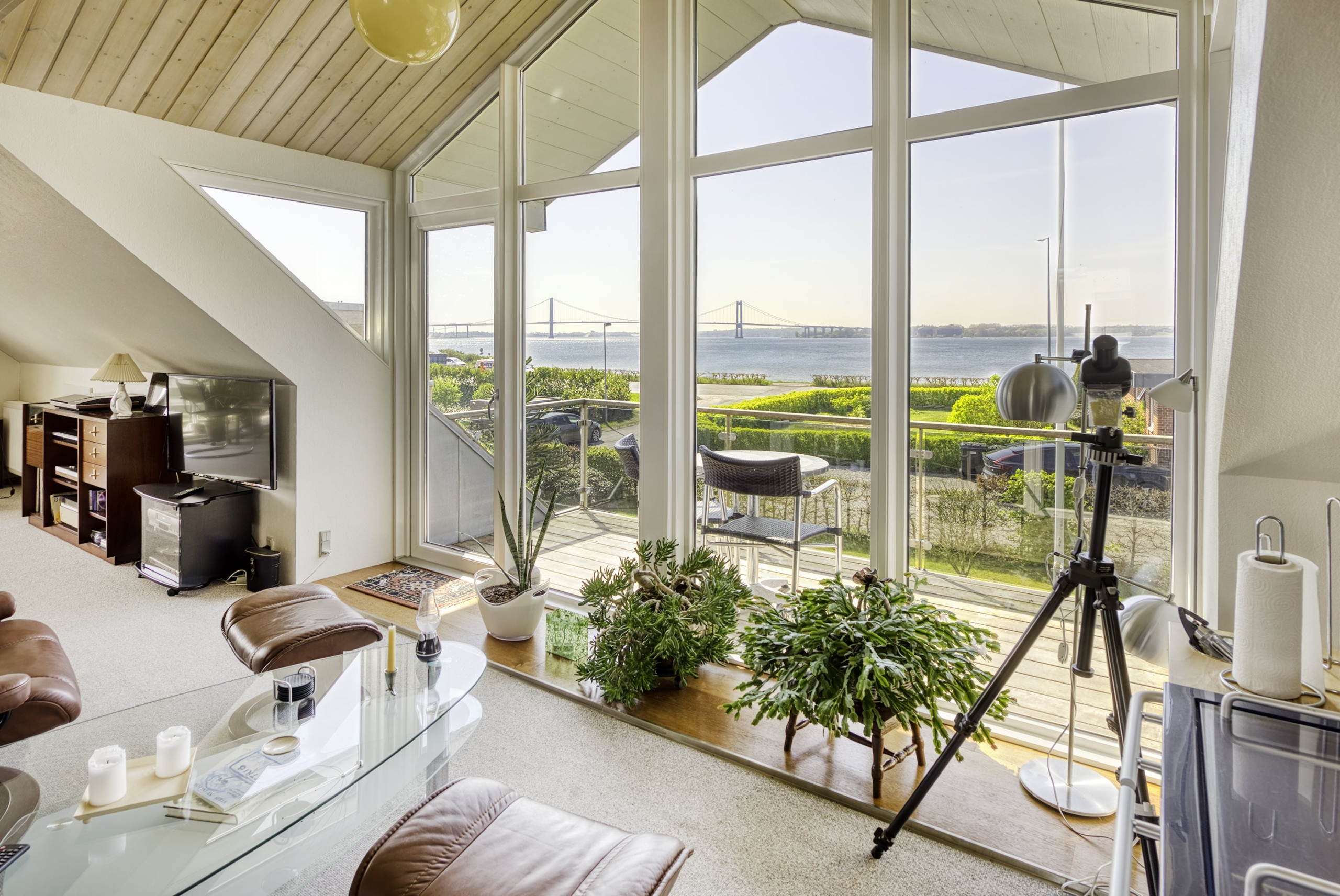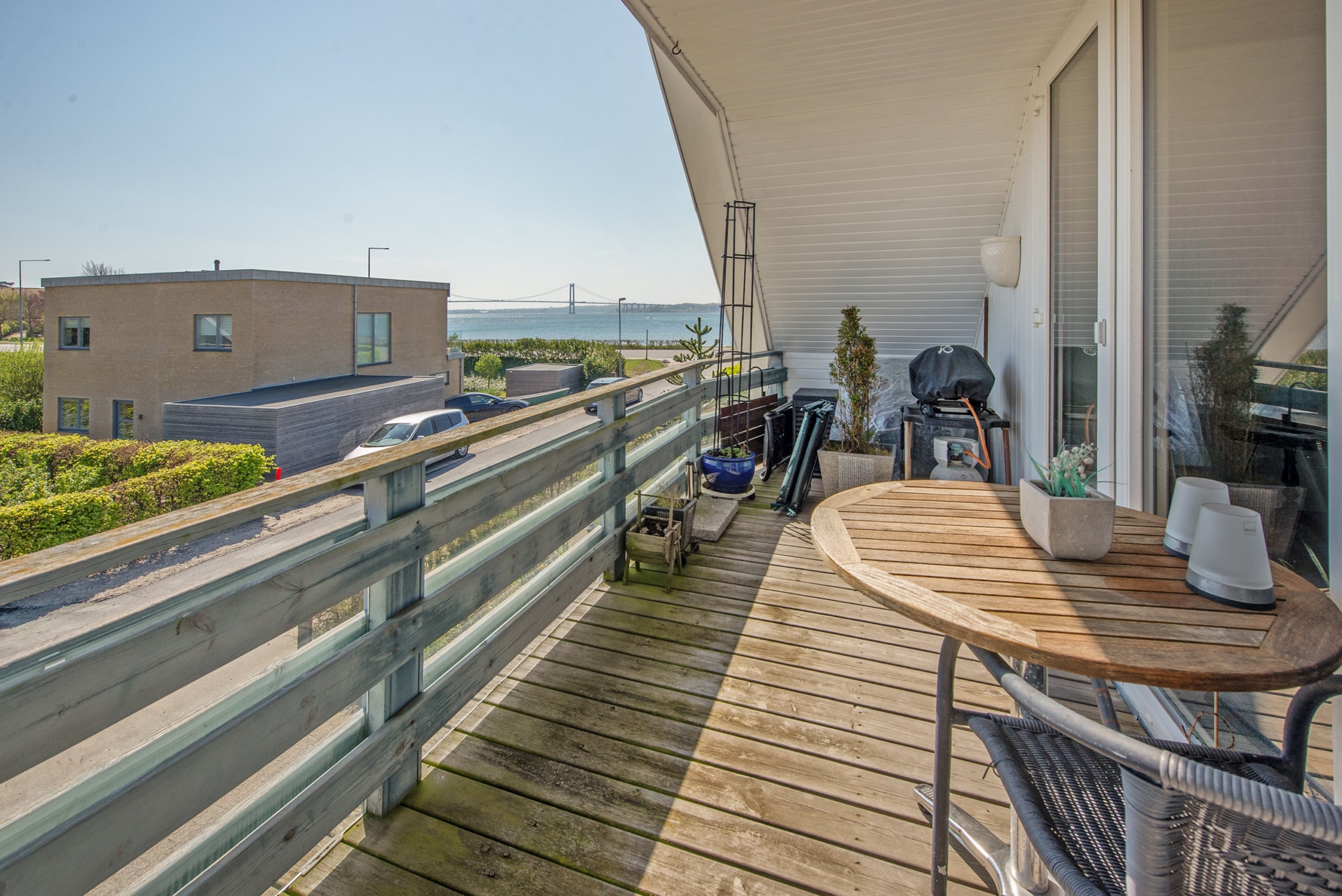 1. salen alene er på 92 kvm. Den er først om fremmest indrettet med soveværelse og badeværelse. Resten er indrettet som een stor stue med udgang til 2 altaner. Den ene altan findes i husets endegavl og en nyere altan er indbygget i en stor kvist med glasparti mod bæltet. Kvisten er en ændring som nuværende ejer har tilført huset nogenlunde samme tid som taget blev skiftet. Det store rum åbner op for mange forskellige muligheder mht. indretning. Det kan være ekstra værelser, multirum for hele familien, arbejdslokaler til liberalt erhverv – bestem selv hvordan du vil anvende et lokale på ca. 65 kvm med panoramaudsigt over Lillebælt.