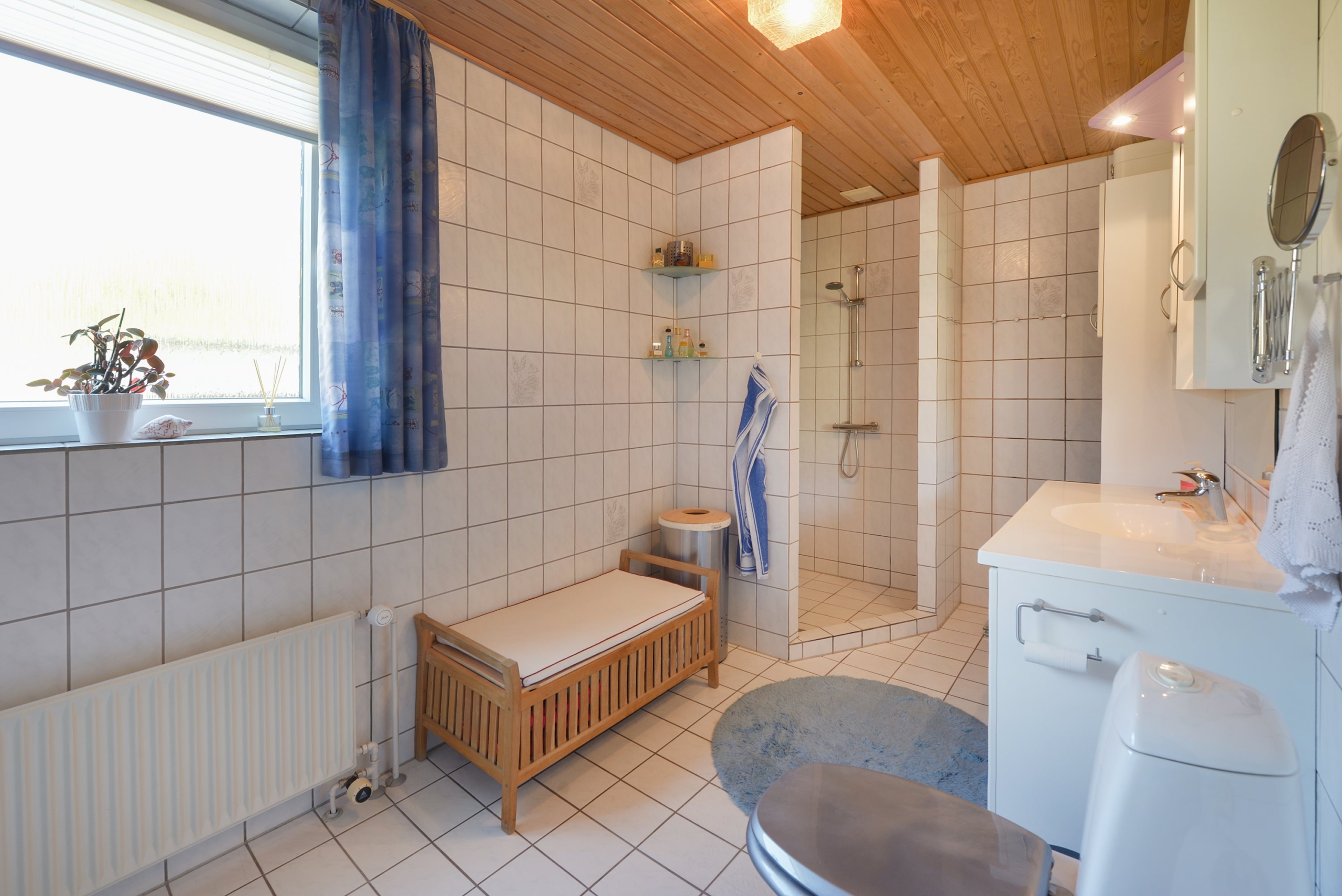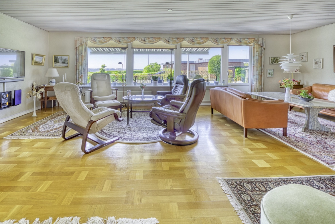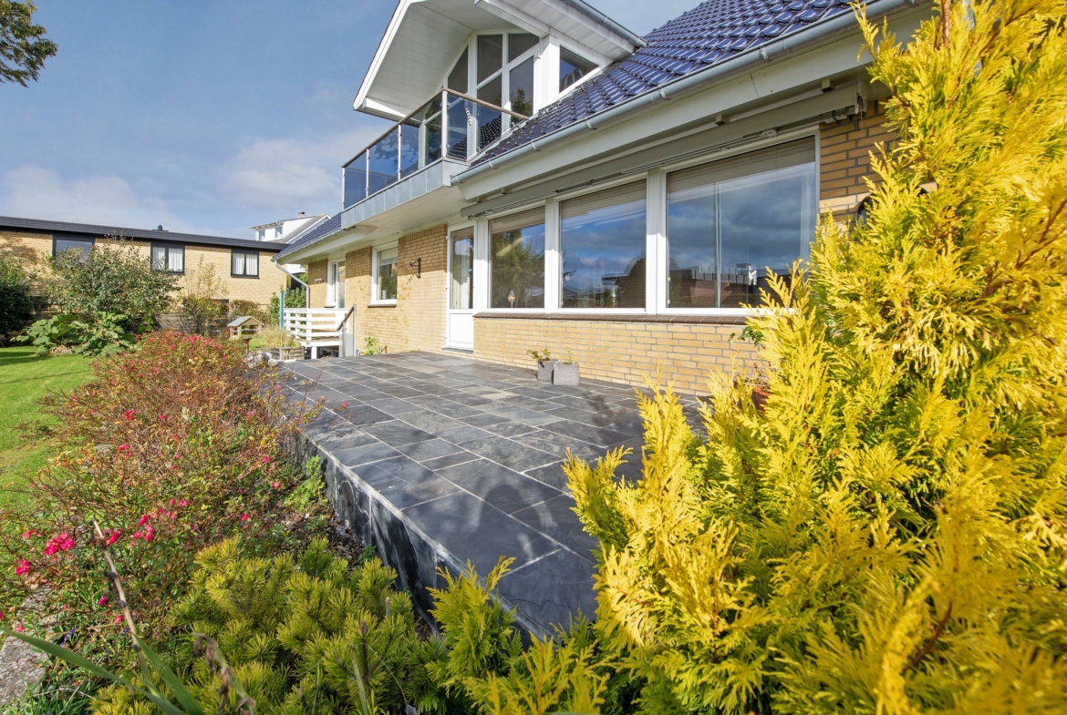 1. salen alene er på 92 kvm. Den er først om fremmest indrettet med soveværelse og badeværelse. Resten er indrettet som een stor stue med udgang til 2 altaner. Den ene altan findes i husets endegavl og en nyere altan er indbygget i en stor kvist med glasparti mod bæltet. Kvisten er en ændring som nuværende ejer har tilført huset nogenlunde samme tid som taget blev skiftet. Det store rum åbner op for mange forskellige muligheder mht. indretning. Det kan være ekstra værelser, multirum for hele familien, arbejdslokaler til liberalt erhverv – bestem selv hvordan du vil anvende et lokale på ca. 65 kvm med panoramaudsigt over Lillebælt.